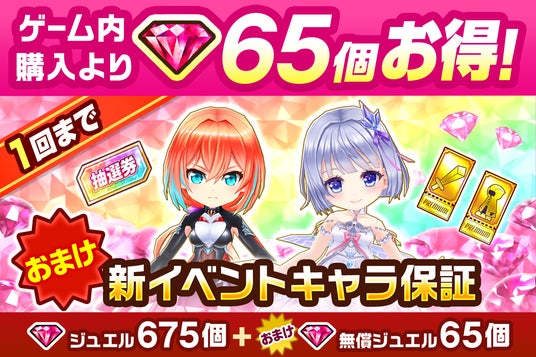内容物:「ジュエル」675個、「無償ジュエル」65個、「新イベントキャラ保証」など