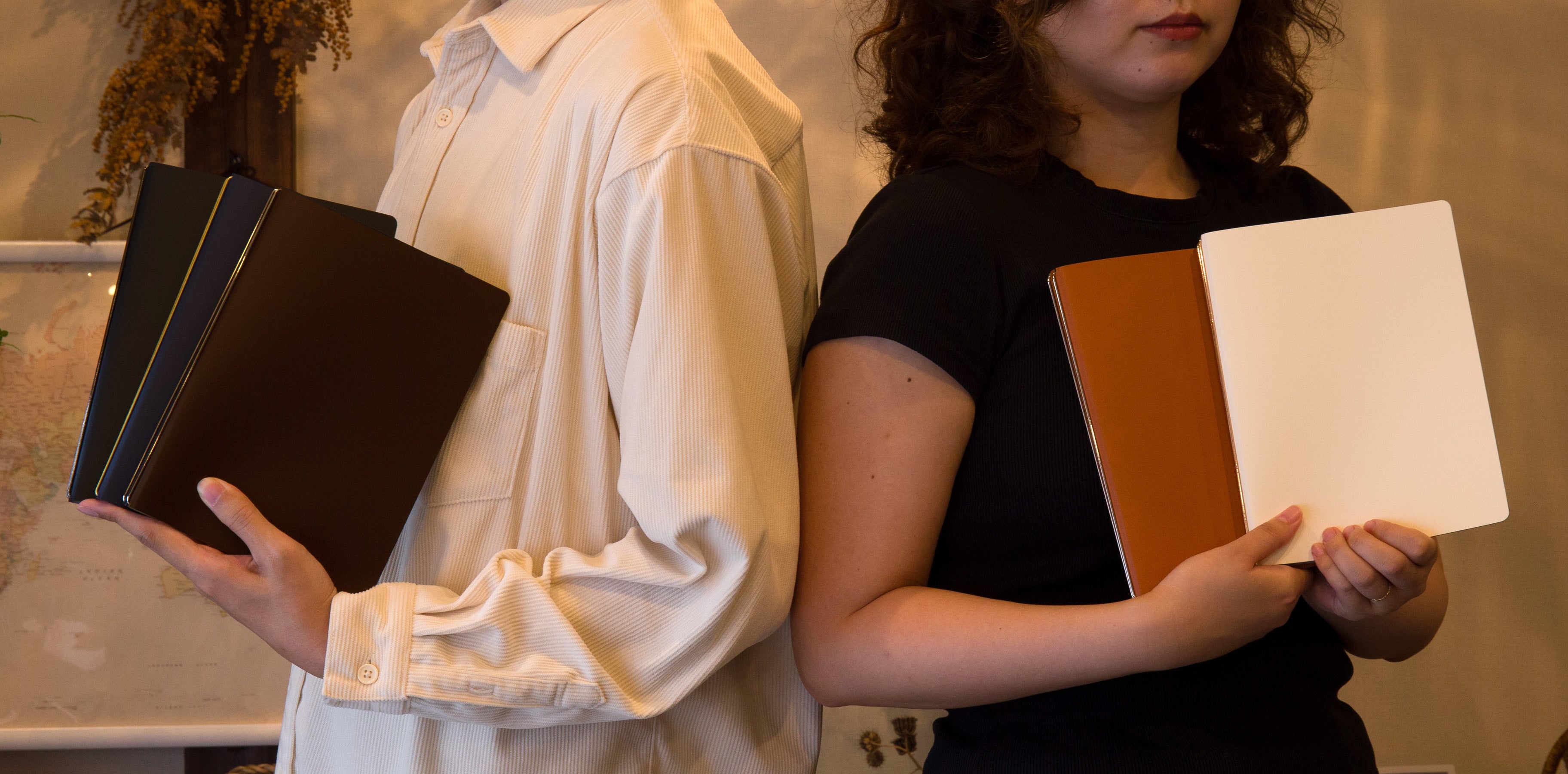 2冊のダイアリーとノートをスマートに持ち歩けます。