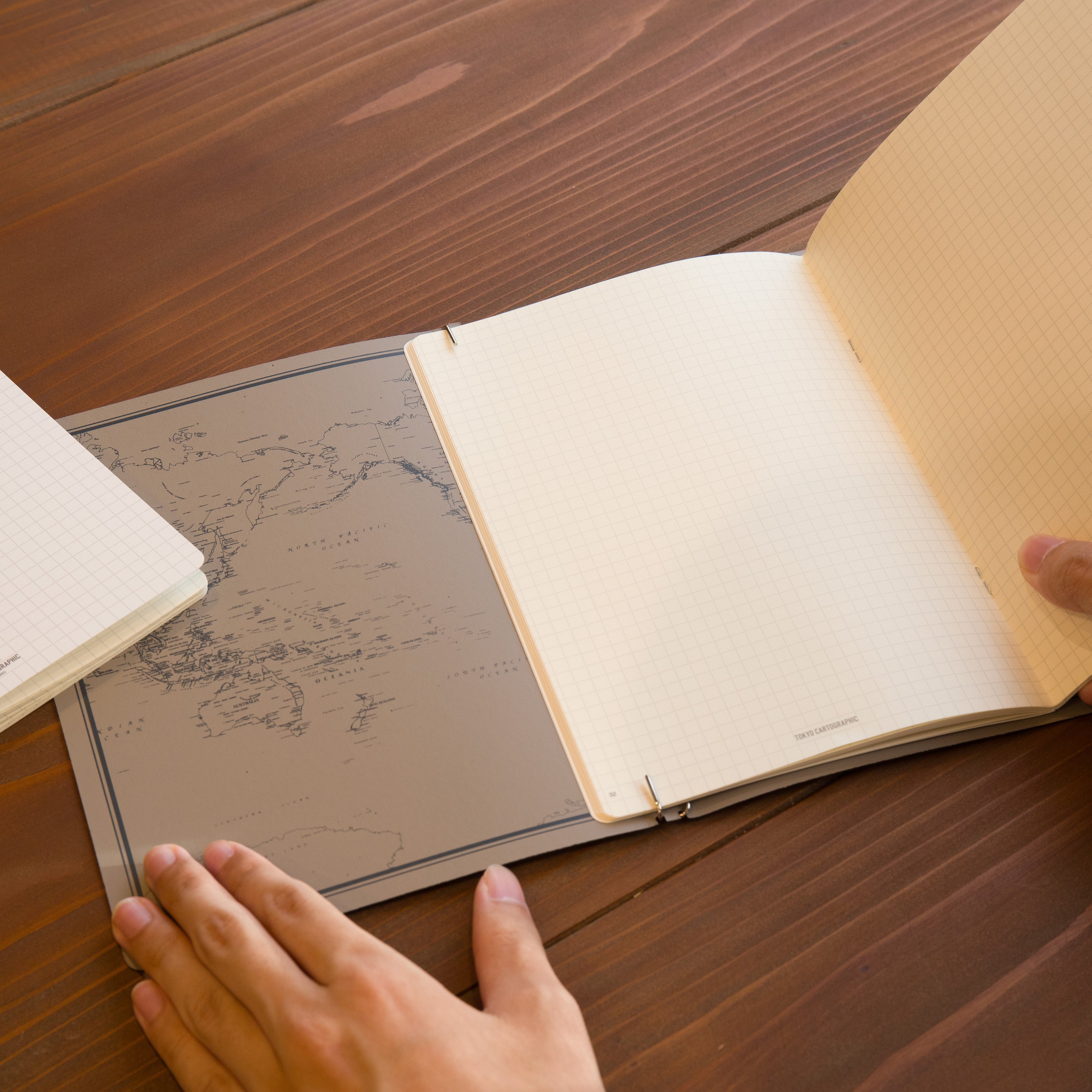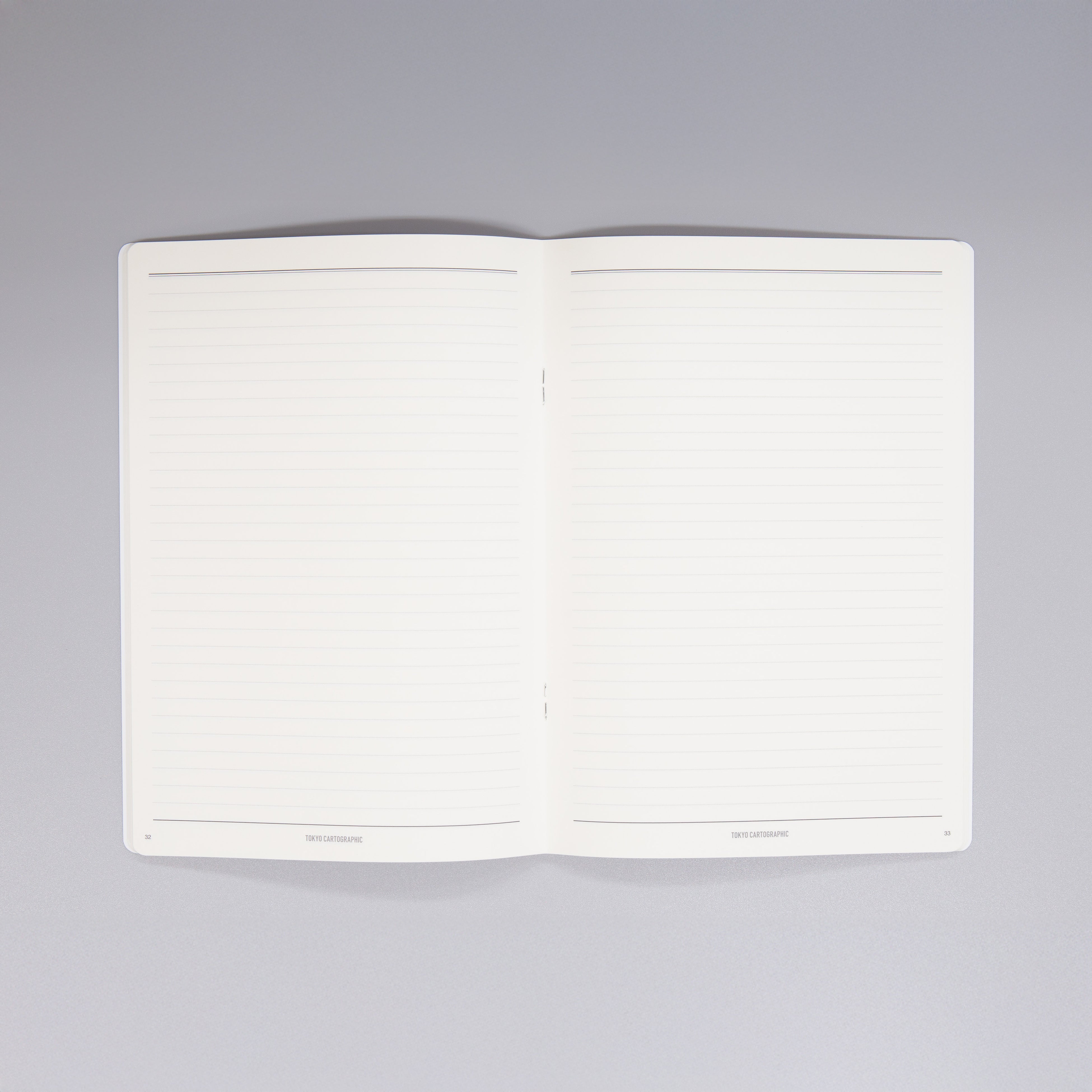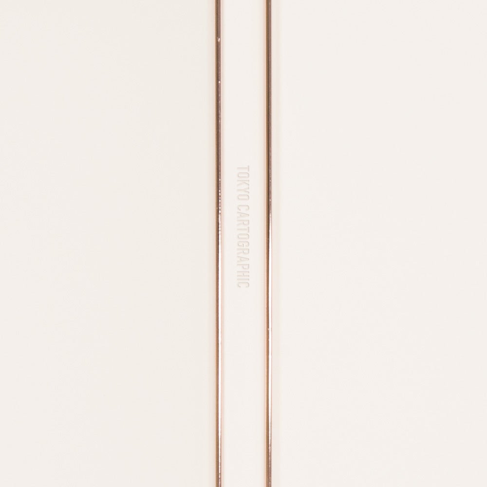 背表紙にはフックバーの間から見える「TOKYO CARTOGRAPHIC」ロゴがさりげなく空押し処理されています。