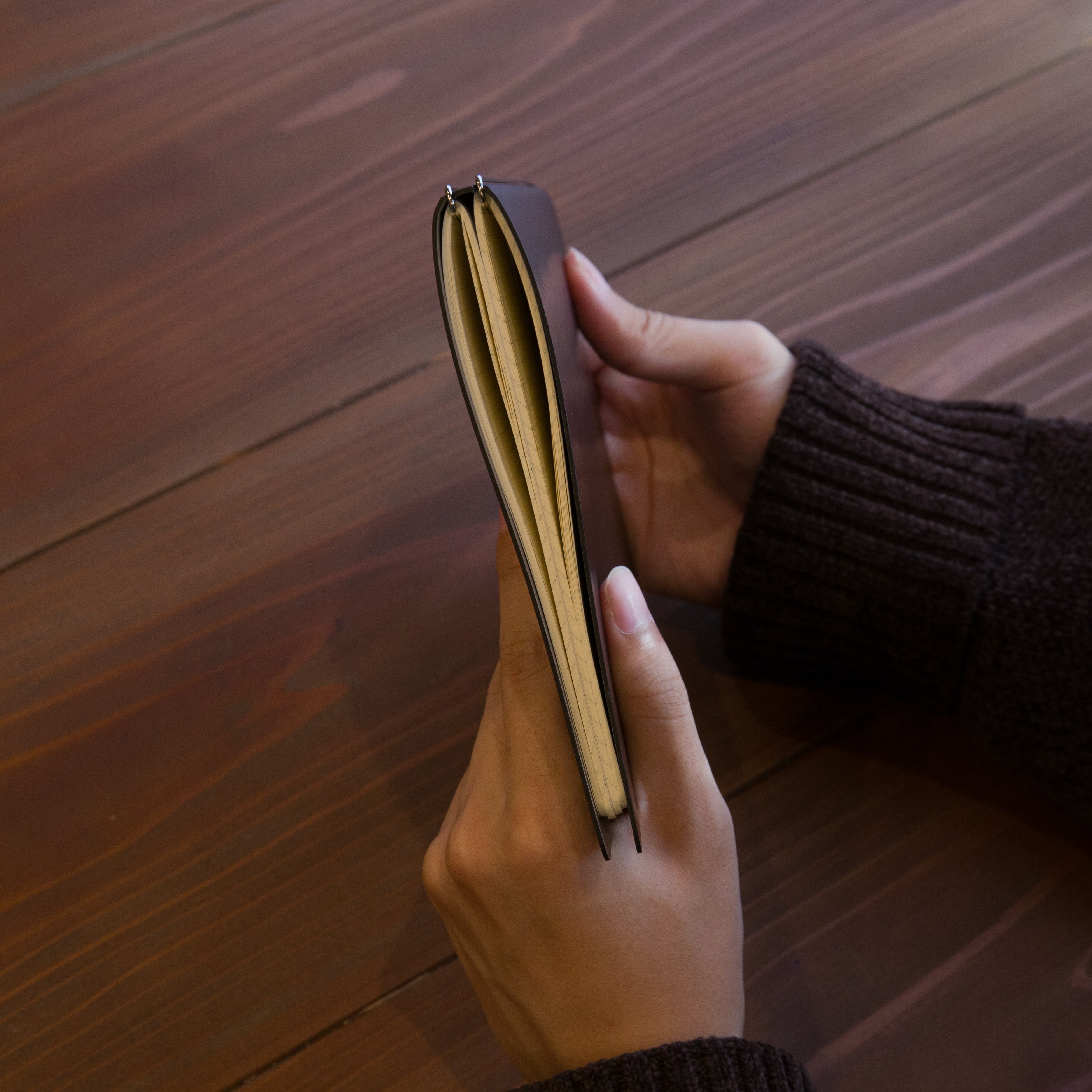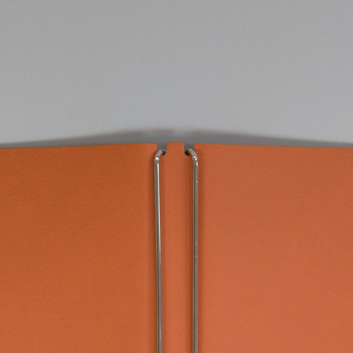 フックバーに中綴じノートの中心を引っ掛けている状態です。