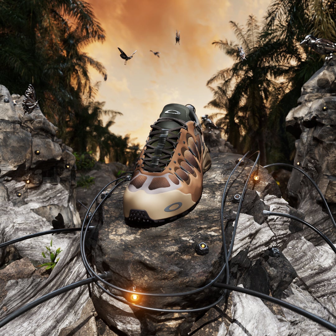 本コレクションは、アイウェアもフットウェアも実験を通してパフォーマンスを再構築し、アーカイブのDNAとテクニカルデザインを融合するという、Oakley Factory Teamの世界観を体現しています。