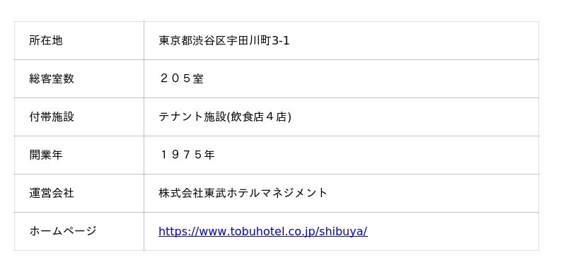株式会社東武ホテルマネジメント(本社:東京都墨田区 代表取締役:三輪裕章)は、2027年3月末の賃貸借契約の満了に伴い、渋谷東武ホテルの営業を2027年2月末頃を目途に終了することといたしましたのでお知らせいたします。