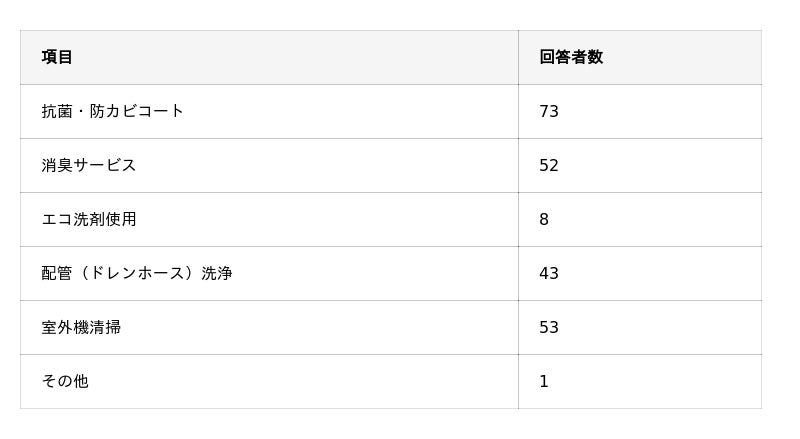 エアコンクリーニングのオプションに関するアンケート調査の概要