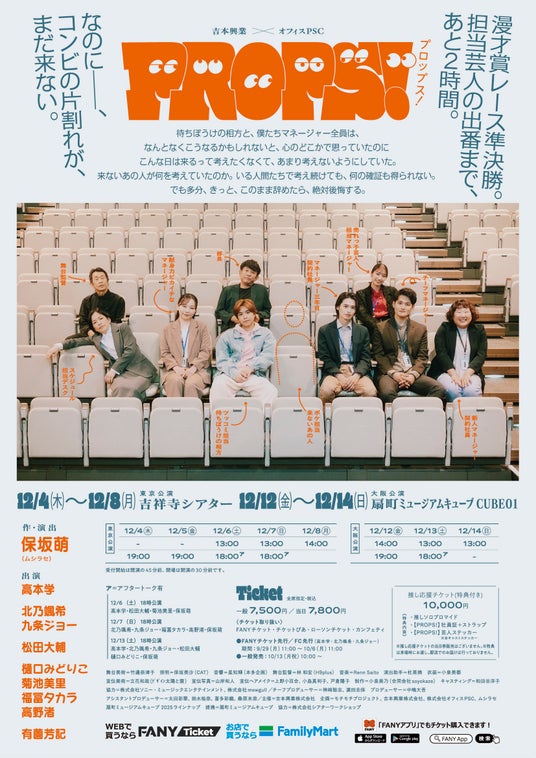 2025年12月4日(木)~8日(月)に東京・吉祥寺シアター、12月12日(金)~14日(日)に大阪・扇町ミュージアムキューブ CUBE01にて上演する舞台『PROPS!』 につきまして、豪華芸人によるオープニングでのネタ披露が決定しました。