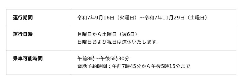 地域のタクシー会社(基山タクシー)と連携しながら運行中