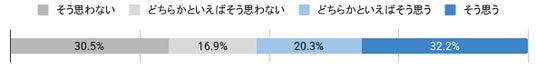 「そう思う」「どちらかといえばそう思う」は合わせて53%となり、採用コスト(求人広告費)が上昇していると感じている人が半数以上であることが明らかになりました。
