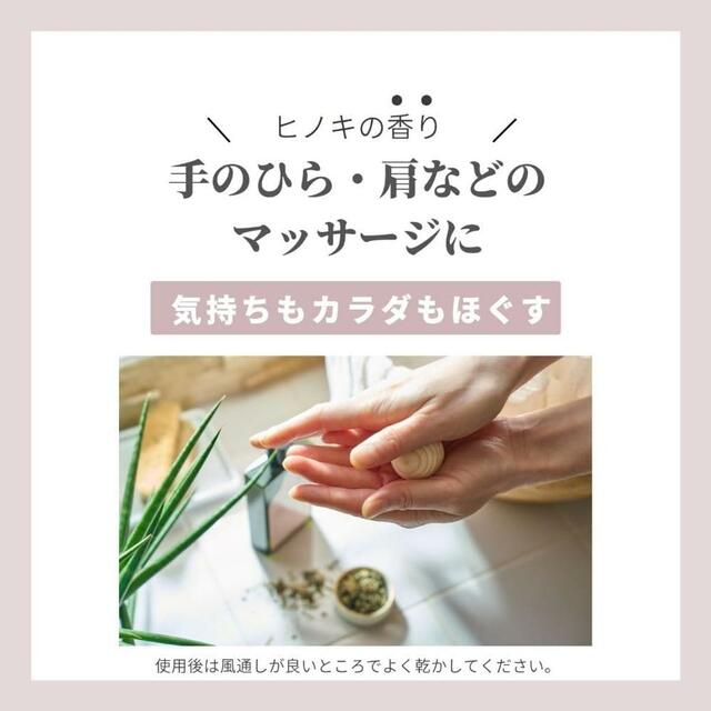湯船に浮かべると、お湯の温度でヒノキの香りが広がり、まるで森の中で深呼吸をしているような心地よさを感じられます。