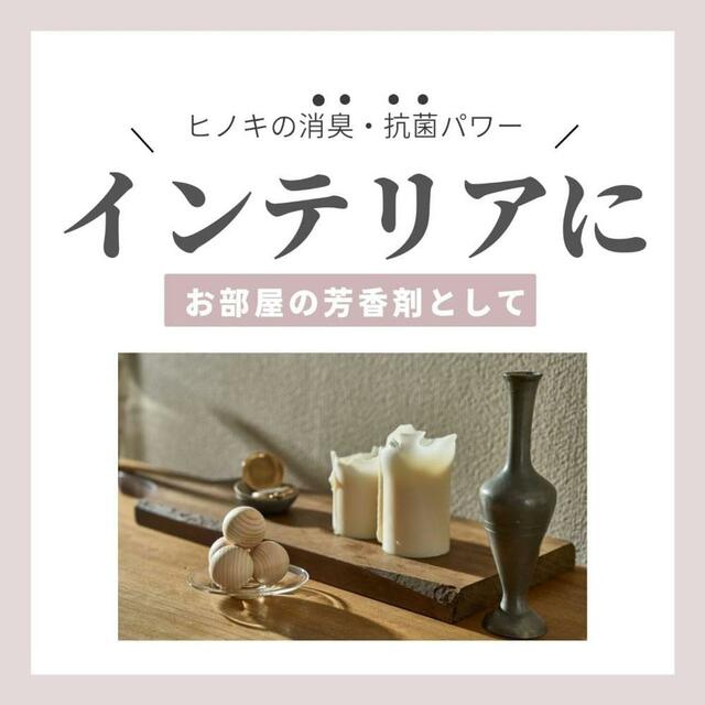 「ヒノキボール」は約5回程度入浴時に香りを楽しんだ後、消臭剤として転用可。お部屋や靴箱に置けば、ヒノキの持つ天然の消臭効果を発揮します。