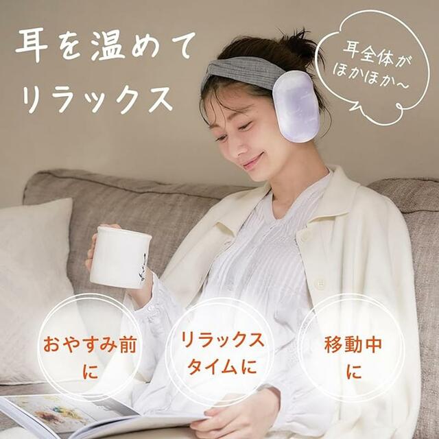 装着するだけで約20分間、耳全体をやさしく温めてくれる便利な商品です。ラベンダーの香り付きで、疲れた心と身体をそっと解きほぐしてくれますよ。