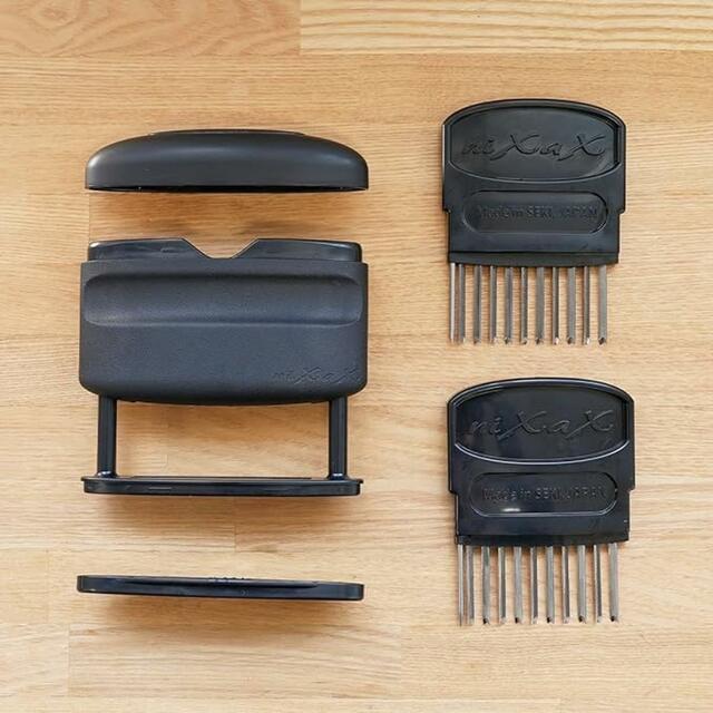 岐阜県関市の熟練の職人が作る「ニクサスプロ スジ切」は、20本の彫刻刀が一度に肉の筋をカットし、硬い肉も驚くほど柔らかく仕上げてくれる優れものですよ。