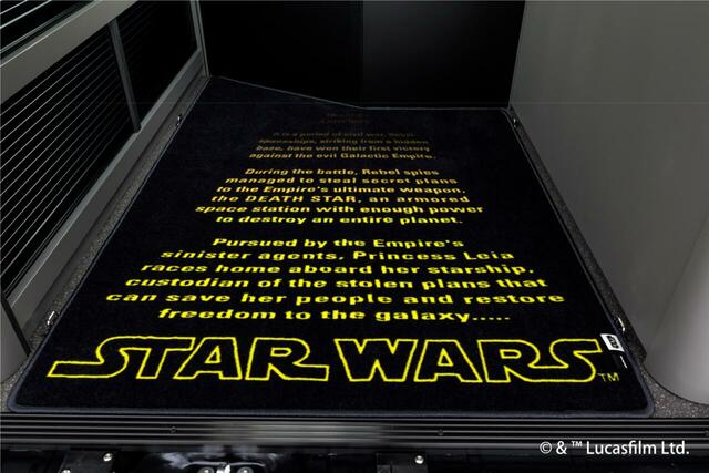 中にはいると、マットに『エピソード4:新たなる希望』のオープニングクレジットが描かれ、銀河の世界へ入っていくよう。
