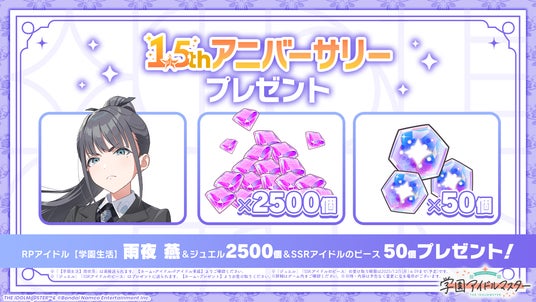 株式会社バンダイナムコエンターテインメントは、2025年11月16日(日)「学園アイドルマスター」がリリースより1.5周年を迎え、ゲーム内にて13人目のアイドル「雨夜 燕」のプロデュースが開始したことをお知らせいたします。