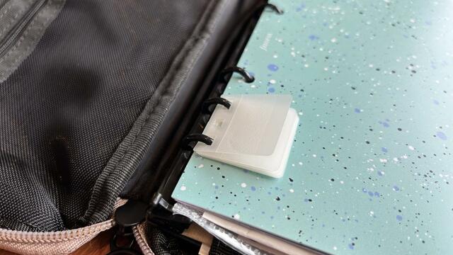 また、名刺整理にも使いやすいです。打ち合わせのメモやパンフレットの隣に名刺を閉じておけば、商談内容を見返すときにも役立ちます。