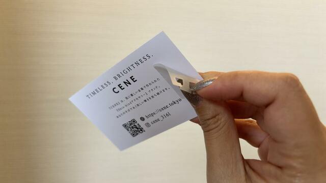 シンプルな使い心地もいい感じ。粘着面を名刺やカード、チケットなどの端にペタッと貼り付けるだけです。