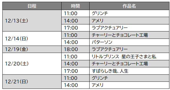12/13(土)、14(日)、19(金)、20(土)、21(日)