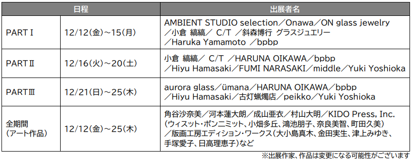 ※期間中、3回にわたり出展者が入れ替わります