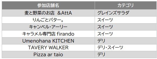 7店舗 ※出店日時は店舗ごとで異なります/順不同