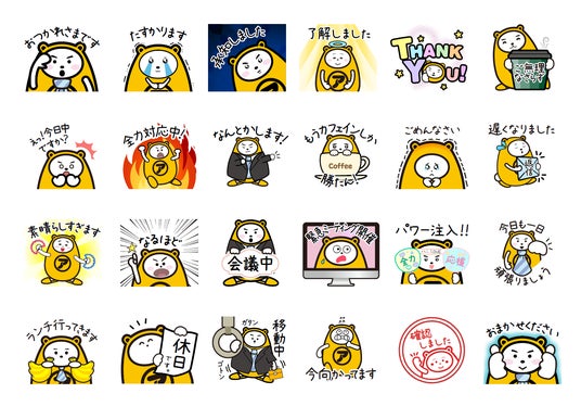 「おつかれさまです」「了解しました」「会議中」「全力対応中!」など、社内外のやり取りで活躍する実用的なスタンプをラインアップしました。思わずクスッと笑ってしまう“べあ~君らしい表情”も満載で、仕事のコミュニケーションを和ませるアイテムとしてもお使いいただけます。