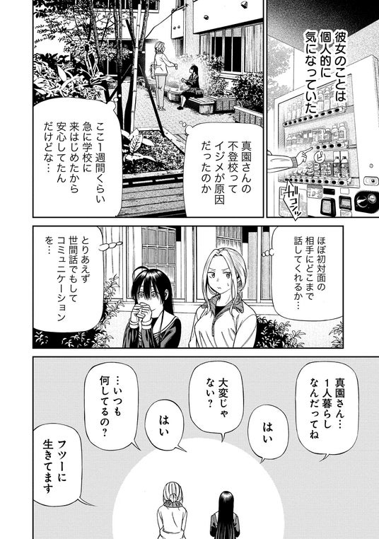ある日、不登校の生徒・真園がイジメに遭っているのを見つけて、彼女を助けようと決心する。