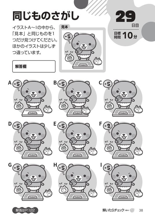 各問題には解く「目標時間」を設けることによって脳トレ効果を高められます。
