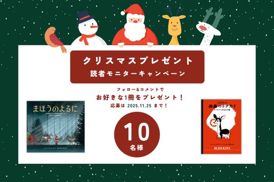 クリスマスが待ちきれない子どもたちにアーリークリスマスプレゼント! 秋冬にぴったりの絵本『まほうのよるに』『ルドルフ 赤鼻のトナカイ』の2冊からお好きな1冊をお選びいただき、お子様が実際に楽しんでいただいている様子やご自身のご感想を、Xにご投稿くださる読者モニター様を、合計10名募集いたします。