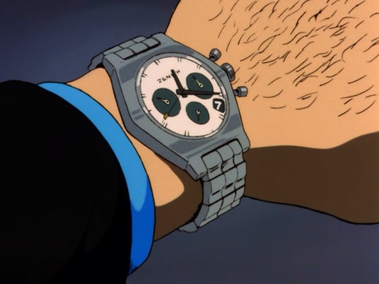 1969年、ゼニスは画期的なキャリバー エル・プリメロと、これを搭載した初のウォッチA384を発表しました。そのわずか2年後の1971年に、人気漫画『ルパン三世』を原作とするTVアニメの第1シリーズが放送を開始。日本で一世を風靡し、その人気は国外へも広まります。個性豊かな登場人物のひとりが、スタイリッシュな射撃の名手でルパンの相棒の次元大介です。次元はアニメの中で、2度にわたりゼニスの時計を着用している姿で描かれました。その時計は明らかにA384をモデルとしていますが、アニメーターによる創作であり、実際には存在しないものでした。興味深いことに、初回はブラックの文字盤、2度目はシルバーの文字盤で登場しています。
