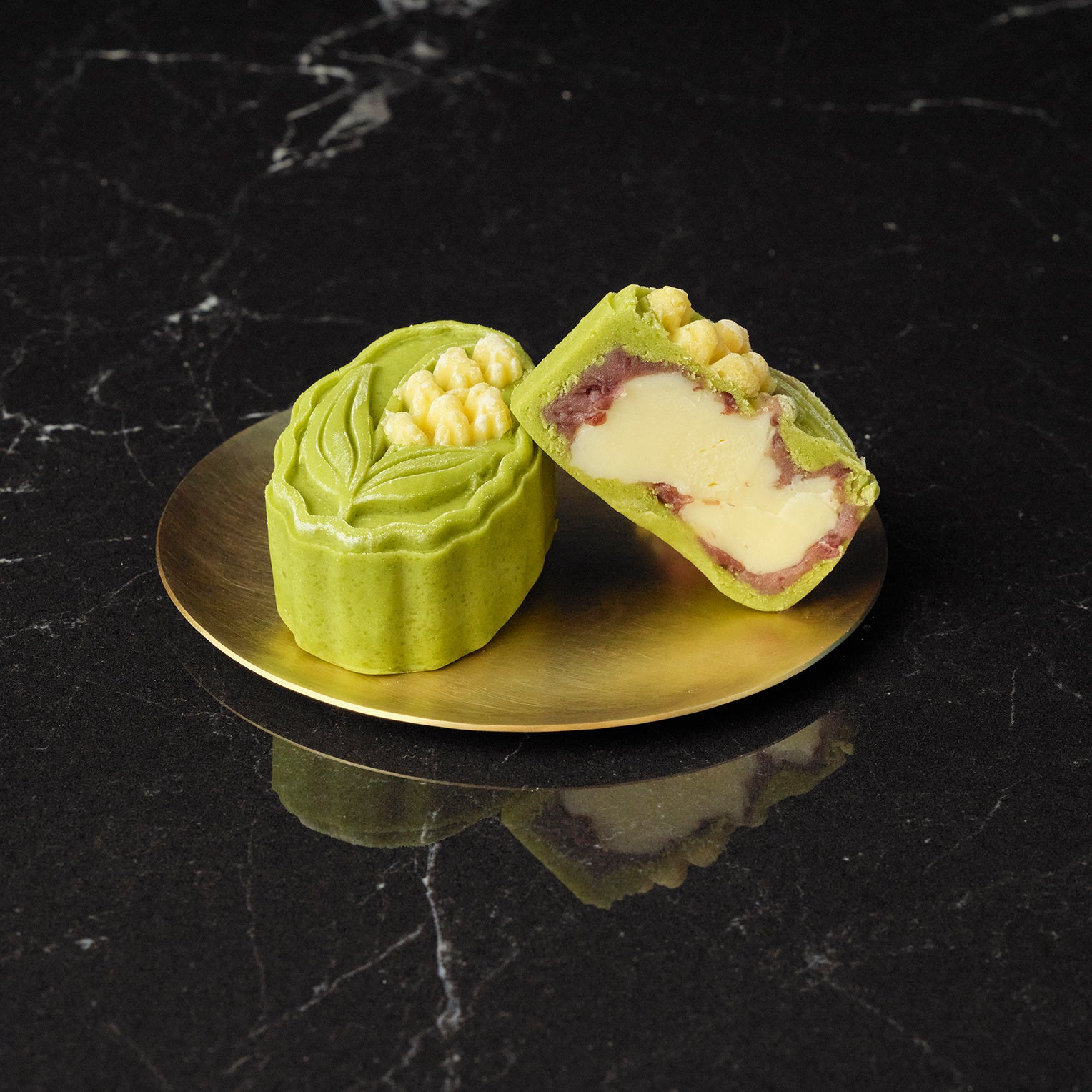 伝統的な焼き月餅とは違い、雪肌のようになめらかで、もちもちっとした半生タイプの月餅です。