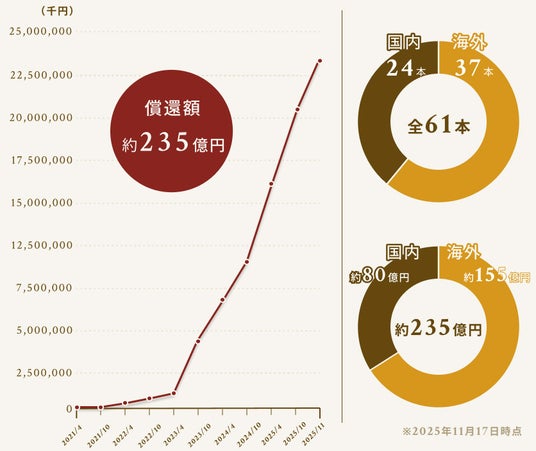 償還済みファンドの平均年利回りは10.09%(2025年11月17日時点)と、業界最高水準を誇ります。