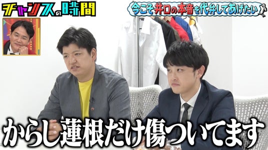 そして、「井口の本音を代弁してあげたい」では、井口のもとに楽屋挨拶に訪れたお笑いコンビ・からし蓮根と『M-1グランプリ』の話題に。「準決勝は6回ぐらい行きました」と語るからし蓮根に、真空ジェシカの川北茂澄は「準決勝6回だったらもう諦めろよ」と井口の心の声を代弁。思わず笑いを堪えた井口に対し、ノブは「いい本音」としながら「からし蓮根だけ傷ついてます」と状況にツッコミを入れました。