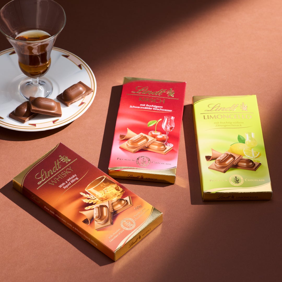 アルコールの余韻を楽しむ、大人のための贅沢な新作タブレットが登場。ラインナップは、華やかな香りの「リンツ チョコレート キルシュ」、甘酸っぱい「リンツ チョコレート リモンチェッロ」、奥深い香りの「リンツ チョコレート ウイスキー」の3種類。いずれも口どけなめらかなリンツのミルクチョコレートから、香り高いリキッドフィリングがとろけだします。