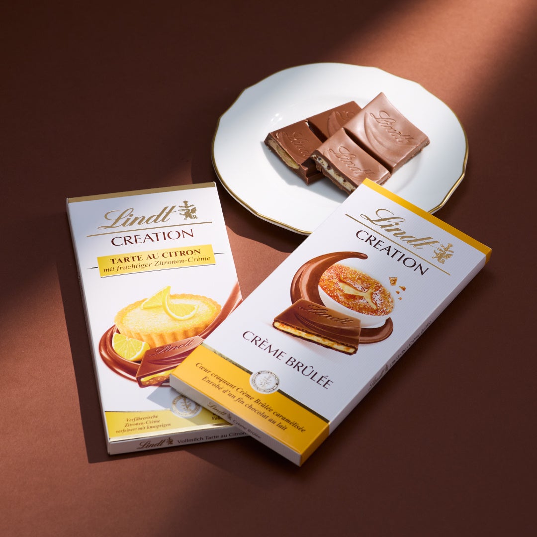 「クリエーション タルトシトロン」は、 爽やかなレモンフィリングと、香ばしいタルト生地を組み合わせ、レモンタルトの美味しさをそのままチョコレートに閉じ込めました。甘酸っぱいレモンと香ばしいタルト生地が織りなす絶妙なハーモニーが、口いっぱいに広がります。紅茶やコーヒーと共に、スイーツ感あふれる贅沢な味わいを心ゆくまでお楽しみください。