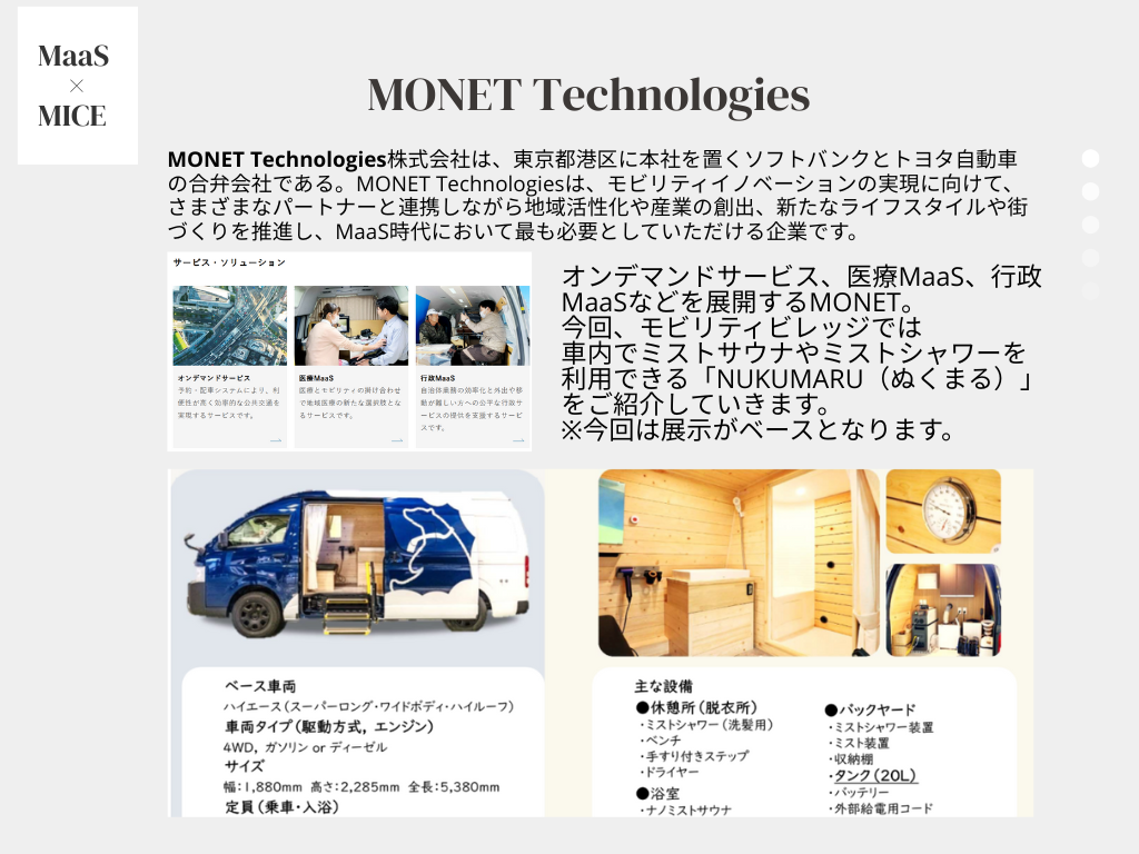 ● MONET Technologies:ミストサウナ車両「NUKUMARU」展示