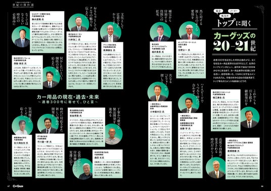 記念特集の巻末では、カー用品業界における各界の“生き字引”に直撃インタビュー。「カーグッズの20-21世紀」を、トップ視点で振り返る。