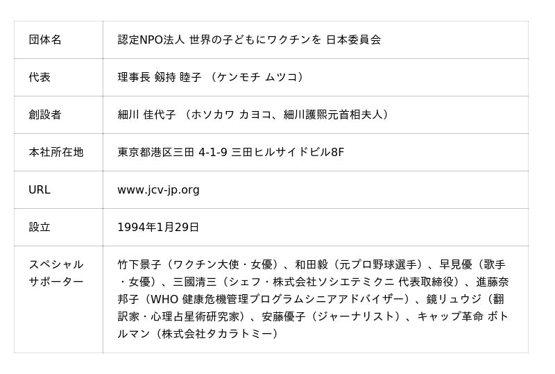 ・協力:認定特定非営利活動法人世界の子どもにワクチンを 日本委員会(JCV)、公益財団法人日本非営利組織評価センター