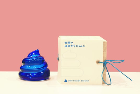 中でも、ここでしか手に入らない沖縄限定グッズとして人気を集めているのが、沖縄県内最大級の手作りガラス工房・琉球ガラス村とコラボレーションした「幸運の琉球ガラスうんこ」。沖縄の青い海と空をイメージして制作された、特別な“うんこ”型ガラスオブジェです。