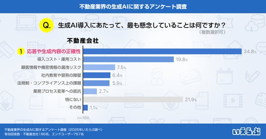 1.生成AIで自動化したい業務は「賃貸・売買の物件説明文作成」が最多(15.7%)、導入の懸念は内容の正確性(34.8%)