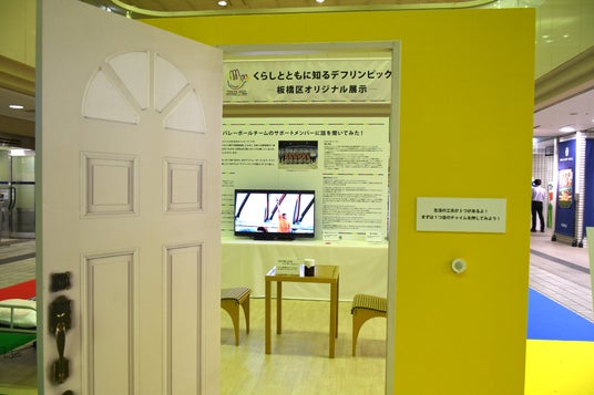 東京2025デフリンピックの開催にあたり、機運醸成と聴覚障がい者への理解促進を目的として、耳がきこえない・きこえにくい人がどのように工夫して生活しているのかを感じられる「家の生活」をイメージした体験展示を行います。また、板橋区スポーツ大使であり、デフサッカー日本代表選手である仲井健人選手を紹介するコーナーや、聴覚障がいへの理解を深められるパネルを展示します。