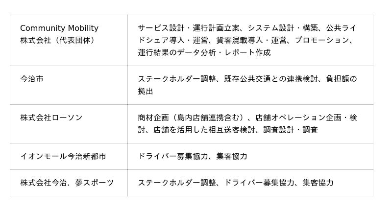 伯方島モビリティコンソーシアム(代表団体:Community Mobility株式会社)は、愛媛県今治市・伯方島において、「公共ライドシェア」の導入と「貨客混載」の実証事業『あちこち伯方島便』(令和7年度「交通空白」解消等リ・デザイン全面展開https://travel.willer.co.jp/maas/mobi/hakatajima/、以下「本事業」)を、2025年11月17日(月)より運行開始します。