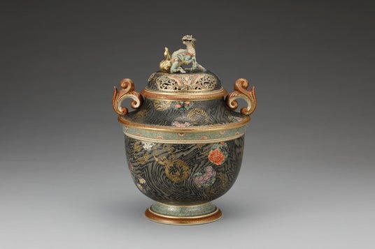 上絵金彩花文麒麟鈕大香炉