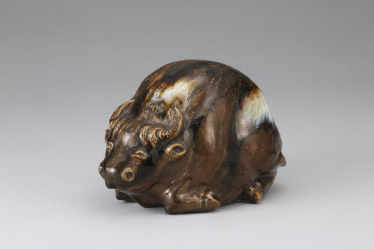 春宇 鉄釉牛形手焙