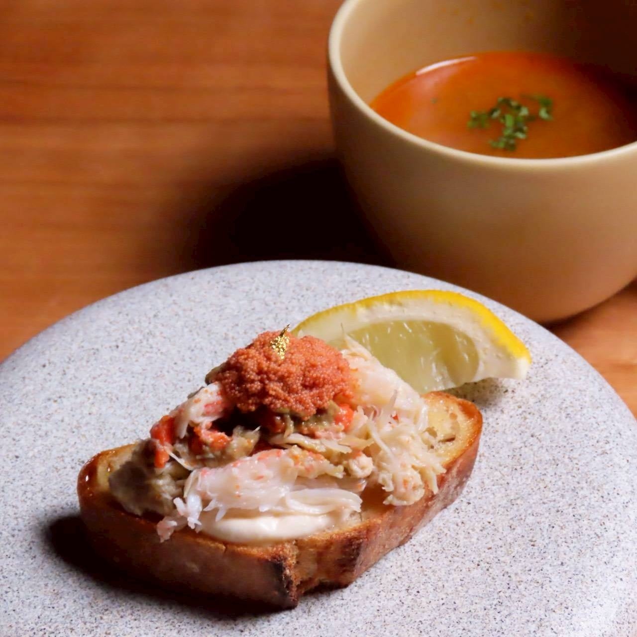 ・香箱蟹のブルスケッタ & コンソメスープ
