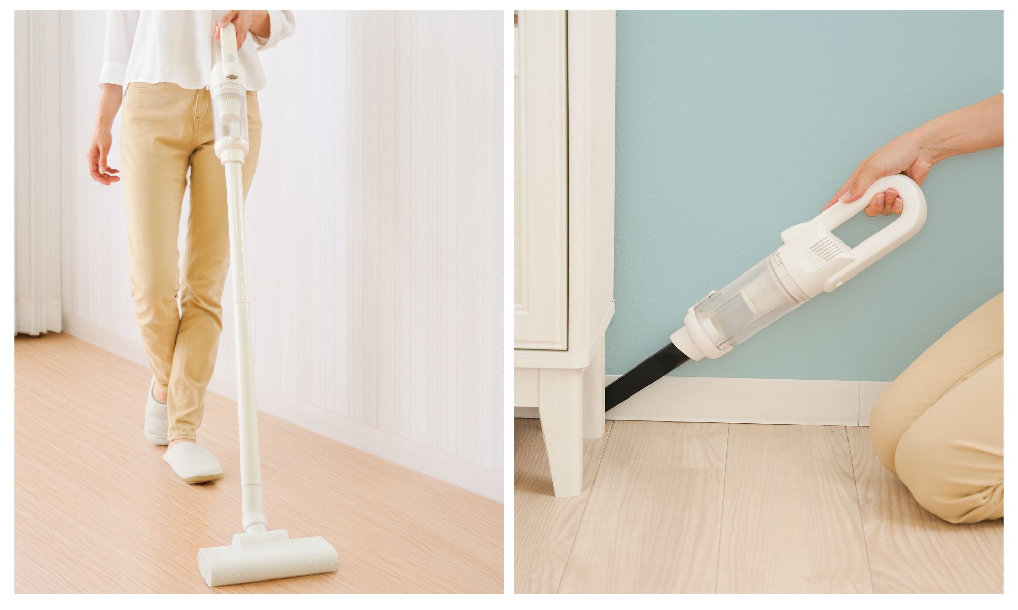 4種のヘッド&ノズル付き!豊富なパーツで床などの広い面からソファやベッドの下・エアコン・車の中など、隅々までお掃除できます。