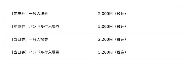・無料入場の方でもバンドルをご希望の場合、バンドル付入場券が必要となります。