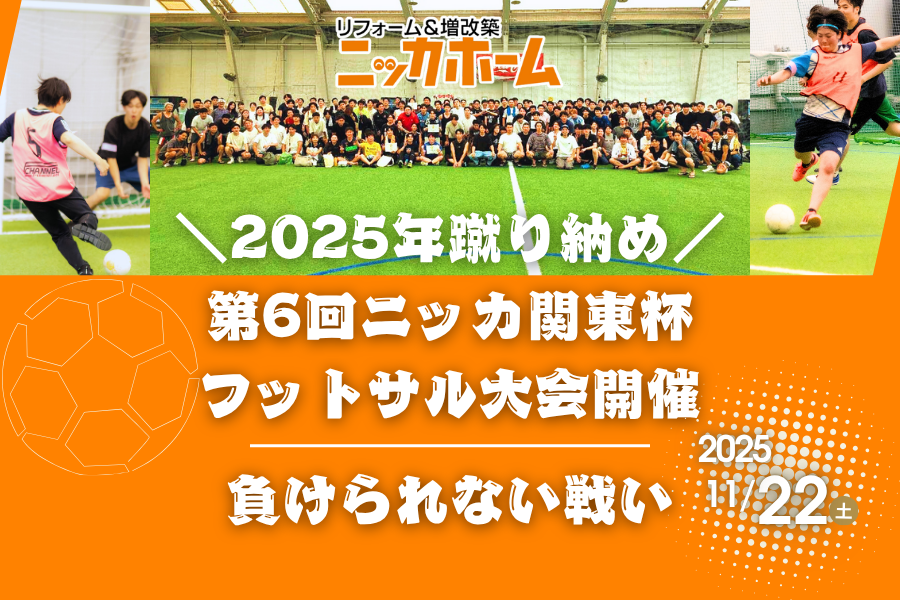 住宅リフォーム事業を手掛ける ニッカホーム株式会社(本社:愛知県名古屋市緑区篭山、代表取締役社長:西田裕久、以下 ニッカホーム)関東支社は、社内レクリエーションとして実施している「ニッカホーム関東杯(フットサル大会)」を、2025年11月22日(土)に開催します。