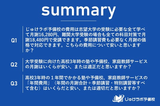 - 調査概要:じゅけラボ予備校の費用に関する調査