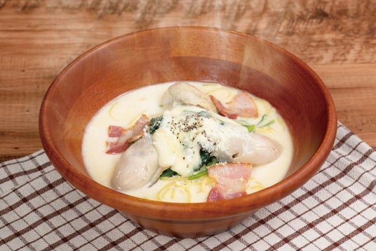 牡蠣の生産量が日本一の広島県に足を運び、濃厚な味わいが魅力の大粒牡蠣を今年も調達。ふっくらとした牡蠣とほうれん草を、まろやかなクリームスープで仕立てました。クリーミーなスープにチーズがとけこむ、心も身体もぽかぽかになるスープパスタです。