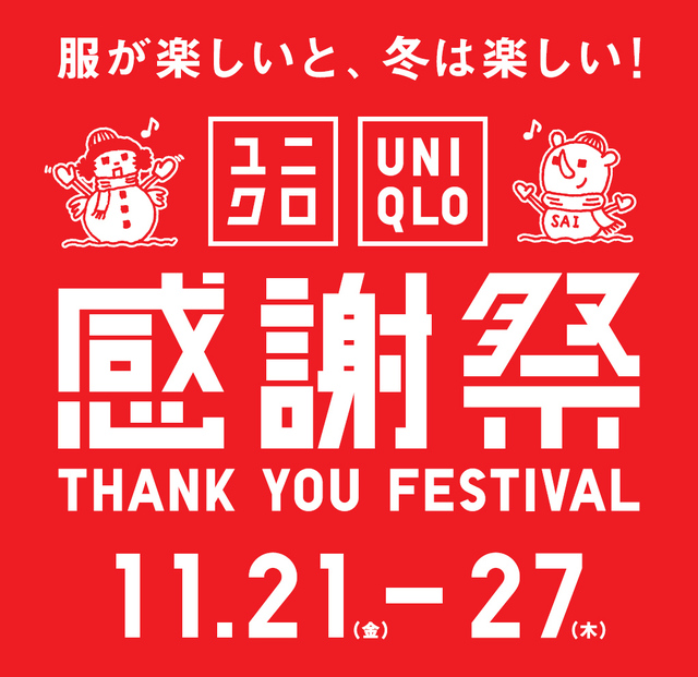 人気ファッションブランド「ユニクロ(UNIQLO)」の一大イベント「感謝祭」が2025年11月21日(金)から27日(木)までの7日間開催されます!