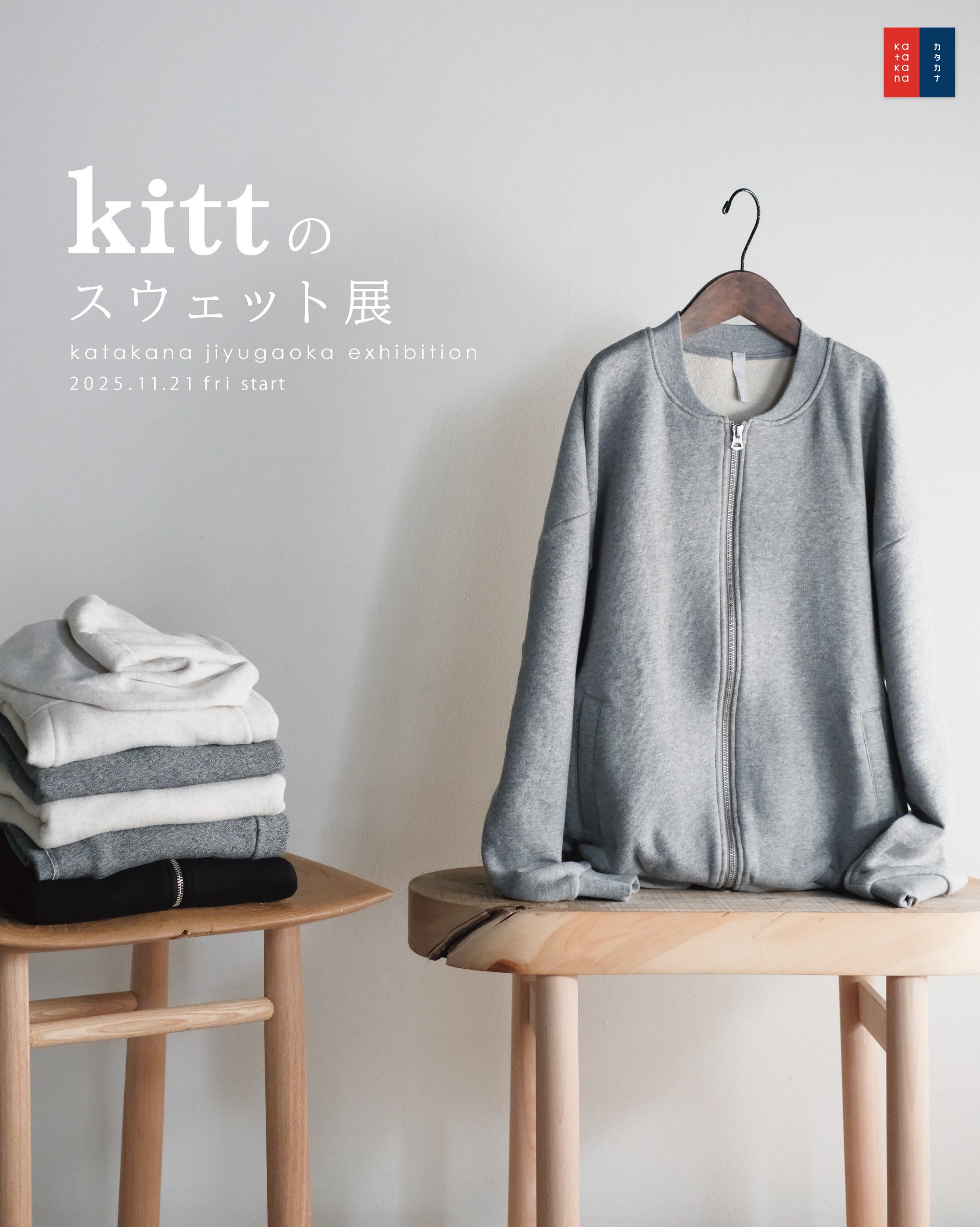 “日本のカッコイイを集めたお土産屋さん”をコンセプトに掲げるセレクトショップ「カタカナ」(株式会社タンケン社)は、2025年11月21日(金)より「kittのスウェット展」を開催します。