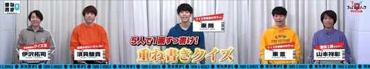 ・QuizKnock出演者:伊沢拓司、ふくらP、河村拓哉、須貝駿貴、山本祥彰、鶴崎修功、東問、東言