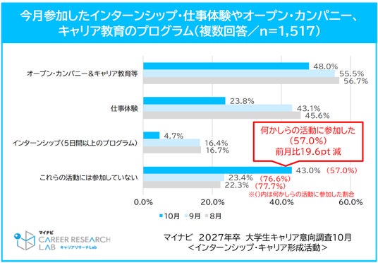 「マイナビ 2027年卒 大学生キャリア意向調査10月<インターンシップ・キャリア形成活動>」